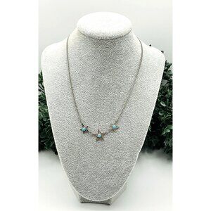 Silver Tone Necklace With Star Charms and Turquoise Accents By Paradise