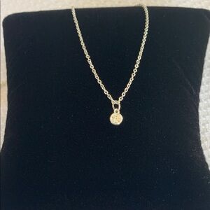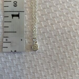 Silver Tone Necklace with Tiny Bezel Set CZ Pendant