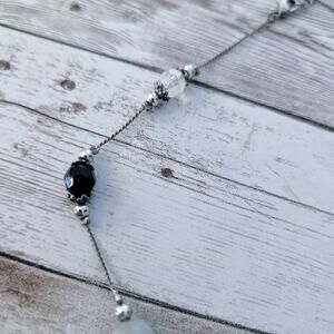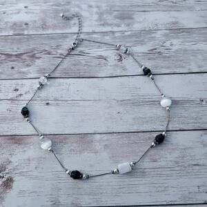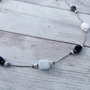 Silver Tone Necklaces with Black & White-ish Accents - Tarnished