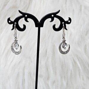 Silver Tone New Star Moon White Sapphire Dangle Earrings