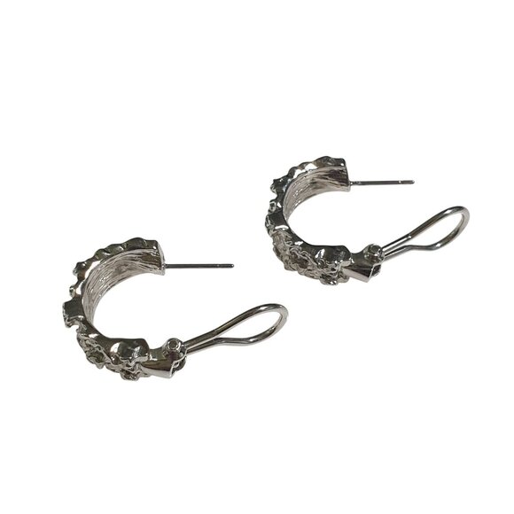 Silver Tone Nugget Textured Hoop Earrings Latch Back Closure Costume Fashion