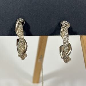 Silver Tone Open Mesh Earrings Twist Hoop 1.5" Earrings Chain Vintage Retro