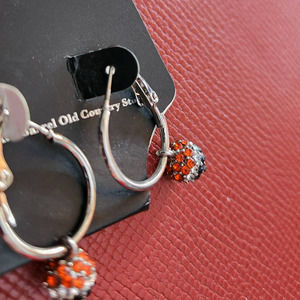 NWT silver tone crystal earrings. Sapphire brand Made For Cracker Barrel Old Country Store. Orange, black and clear / white.