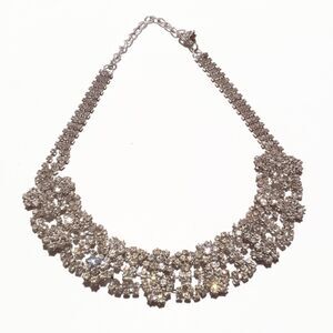 Silver Tone Ornate Prong Set Clear Rhinestone Choker Necklace