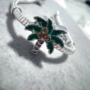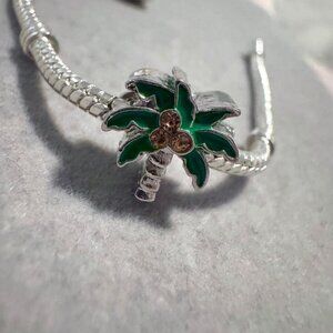 Keywords: charm bracelet, palm tree, tropical, beach, summer, vacation, enamel, silver tone, fashion jewelry, women's accessory, whimsical, cute, boho