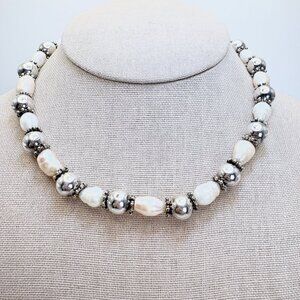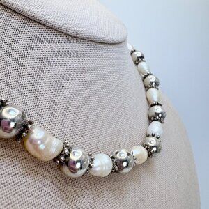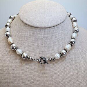 Silver Tone Pearl Ball Bead Design Necklace Toggle Clasp Size 15.25" Length