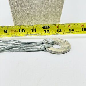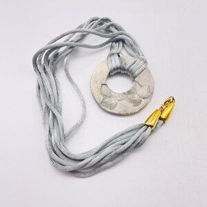 Silver Tone Pendant Necklace Multi Strand Cord Round Disc Modern Statement Artsy