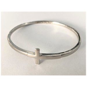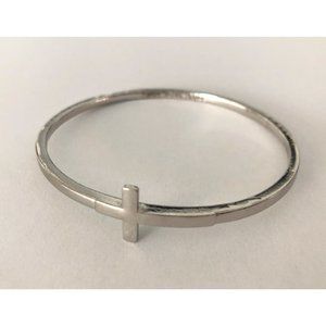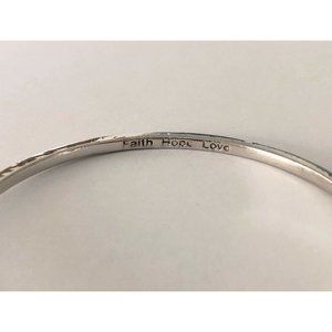 Silver Tone Pewter Sideways Cross Bangle Bracelet Faith Hope Love BSD Christian
