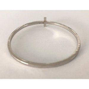 Sleek, minimalistic silver tone sideways cross bangle bracelet made of 100% lead free pewter in good, gently used condition. This Bob Siemon Designs Christian (BSD) bracelet is perfect for Easter. Approximately 2.5” inside diameter, with the words “Faith Hope Love”, and BSD engraved on the inside band. Made in the USA. Please ask any questions before purchasing.