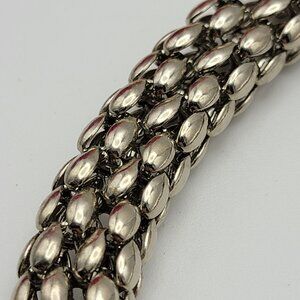 Silver Tone Popcorn Chain Statement Choker Necklace 17" Magnetic Clasp