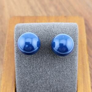 Silver Tone Post Navy Blue Bead Stud Earrings Round Simple Minimalist Everyday