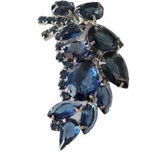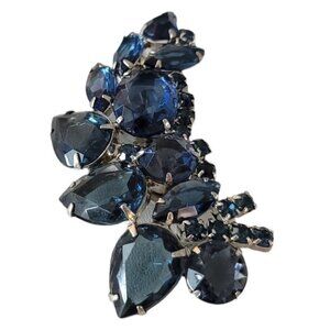 Silver Tone Prong Set Blue Rhinestone Cluster Leaf Brooch Pin E516