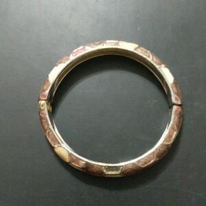 Silver Tone Purple and Cream Enamel Hinged Cuff Bangle Statement Bracelet