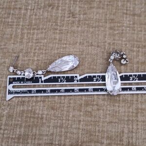 Silver Tone Rhinestone Dangle Drop Post Earrings