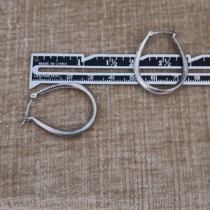 Silver Tone Unique Rhinestone Set Loop Earrings