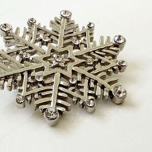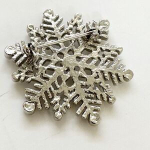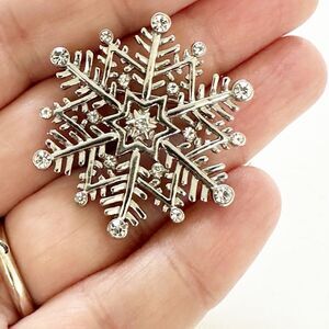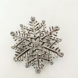 Silver Tone Rhinestone Snowflake Brooch Pin