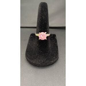 This silver tone ring features a large pink rhinestone as the main focal point, with clear rhinestones on the side for added sparkle. The beauty of this ring lies in its elegant design and vibrant pink color, making it a standout piece for any jewelry collection. The size 5.75 ensures a comfortable fit on the finger, while the rhinestone material adds a touch of luxury to this stylish accessory. Perfect for adding a pop of color and glamour to any outfit.