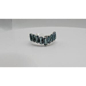 Silver Tone Ring with Blue Rectangular Stones Size 7