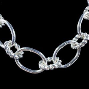 Design Features: Chunky oval links, textured rope accents