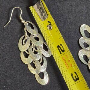 Silver Tone Serpent Scale Dangle Earrings Textured Layered Ovals 3" Lightweight