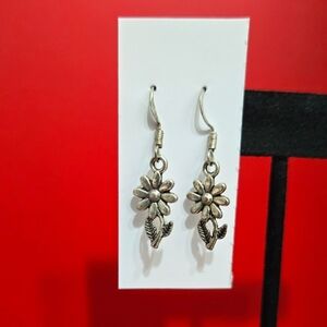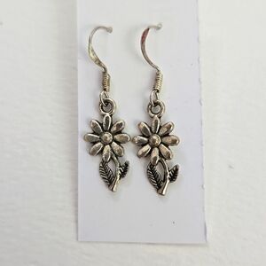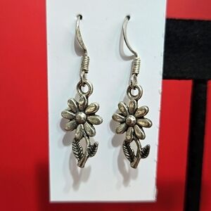 Silver Tone Small Fliwer Vintage Drop Earrings