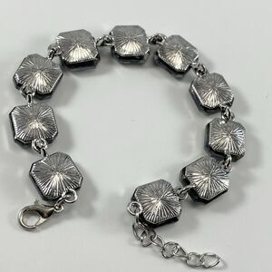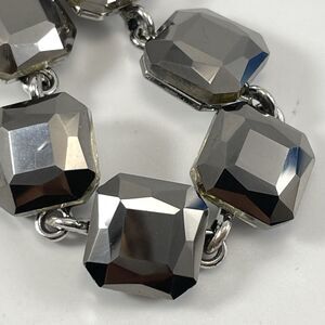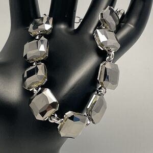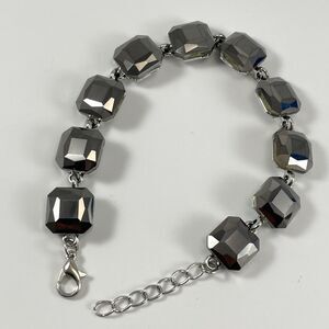 Silver Tone Smoke Dark Gray Glass Rhinestone Chain Tennis Bracelet Bling Boho