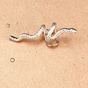 Silver tone snake ear cuff. Snake ear crawler or wrap earring. Textured snake cuff that clips onto outside edge of ear. The snake looks like it’s crawling up your ear. Vintage. EUC.