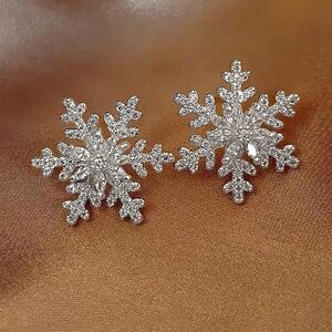 Silver Tone Snowflake Stud Earrings