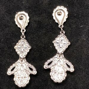 Silver Tone Southwestern Style Dangle Pierced Earrings Coral Turquoise Colored