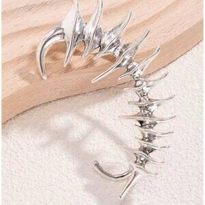 Silver Tone Spike Skeleton Ear Cuff Gothic Punk Thorn Clip On Earring Jewelry