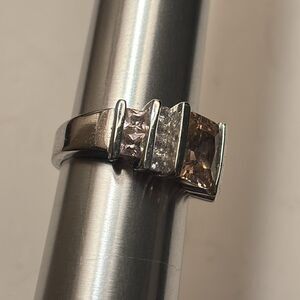 Silver Tone Square Cut Light Pink and clear crystal statement cocktail ring 7