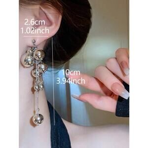 Elevate your look with these striking silver tone statement drop earrings. Designed with polished metallic spheres and cascading chain details, these earrings feature a layered multi-ball design that creates beautiful movement and a modern, high-shine finish. The reflective silver tone adds a sleek, contemporary feel that works perfectly for both formal occasions and stylish everyday wear.