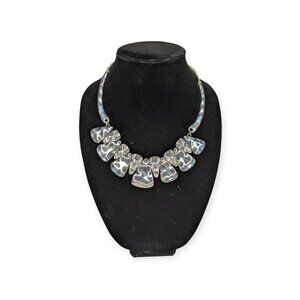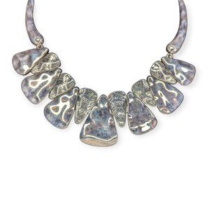 EUC like new silver tone statement necklace with triangle designs with lobster claw clasp.