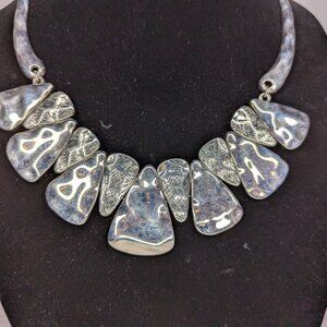 Silver Tone Statement Neckace with Triangle Designs Lobster Claw Clasp