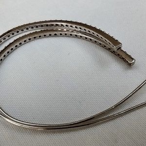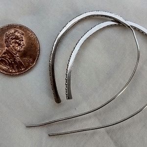 These are barely used Silver Tone Super Skinny Lightweight Threader Hoop Earrings with CZ Accents. Very thin, and pull thru earholes. All silver color.