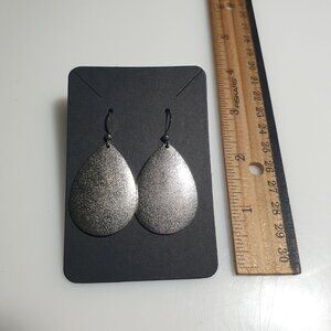 Silver Tone Teardrop Dangle Earrings Glitter Finish Casual Work Mom Gift Boho