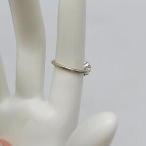 Silver Tone Topaz Rhinestone Daisy Ring Featuring Dual Flower Design Vintage
