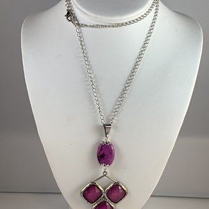 Silver Tone Trace Chain Necklace With Purple Crystals.