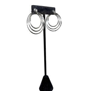 Silver Tone Triple Tiered Hoop Earrings - Modern & Stylish!