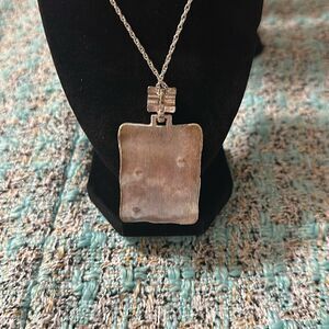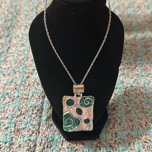 Silver Tone Turquoise Statement Artsy Pendant Necklace