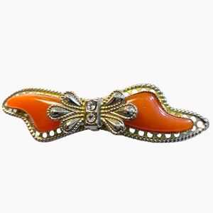 Coral Tone Bow Design Crystal Accents & Silver Tone Filagree Design