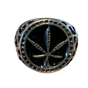 Silver Tone Vintage Style Leaf Decor Unisex Ring