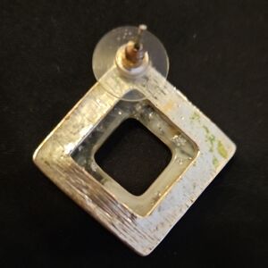 Diamond-shaped silver tone & white enamel stud earrings. Glitters in any light. Excellent condition!