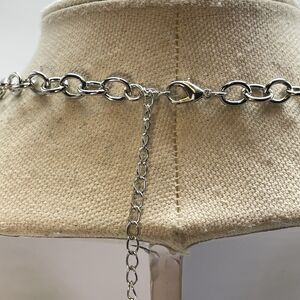 Adorn your neckline with a touch of elegance and sparkle with this striking Boho-style necklace. The unbranded piece features a captivating asymmetrical white glass rhinestone pendant that boasts a halo design, adding a luxurious flair to any outfit. Its silver-tone finish ensures a versatile match with a range of colors and styles, making it a perfect accessory for various occasions. Crafted with care, the necklace includes a secure lobster clasp closure for easy wear. The cable chain provides a comfortable fit around the neck, and its blend of glass and rhinestone materials ensures durability while capturing the light for a radiant finish. Whether it's for an anniversary, birthday, or any other special event, this necklace is sure to add a statement to your look.