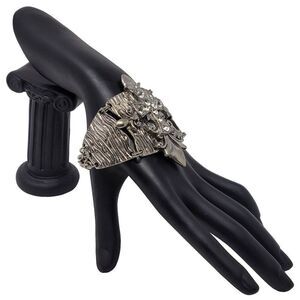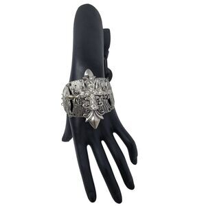 Silver Tone Wide Articulated Cuff Bracelet Rhinestone Coptic Maltese Cross Pirate