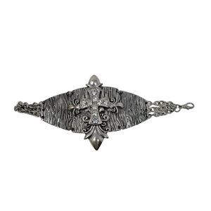 Silver Tone Wide Articulated Bracelet Rhinestone Coptic Maltese Cross Pirate