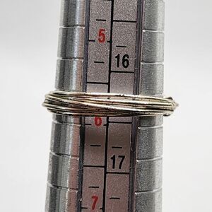 Silver Tone Wire & Genuine Tahitian Button Pearl Ring (5.75)