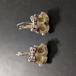 Silver Tone Yellow Crystal Bells with Bow Pierced Statement Earrings