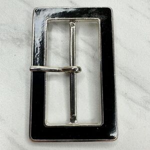 Silver Tone and Black Bar Simple Basic Belt Buckle