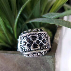 Silver Tone and Black Jewels Stretch Band Ring 💥3 for $24💥